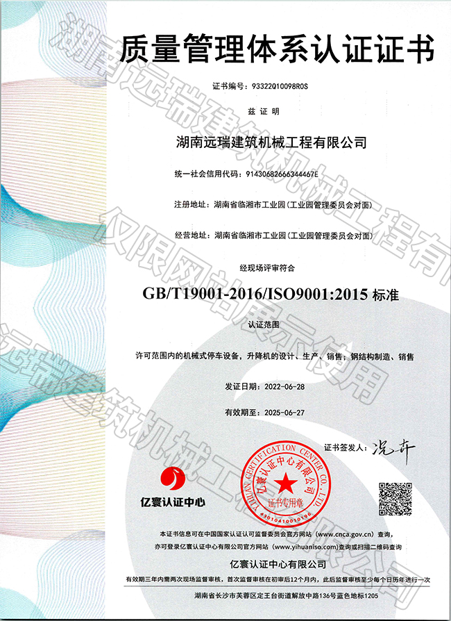 质量管理体系认证证书